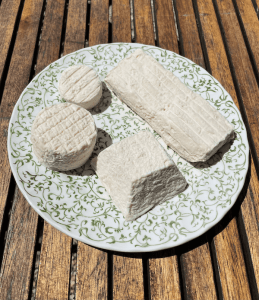 Exemple d’assiette avec crottin, palet (formes ronde, plus petit que le crottin), pyramide et brique.