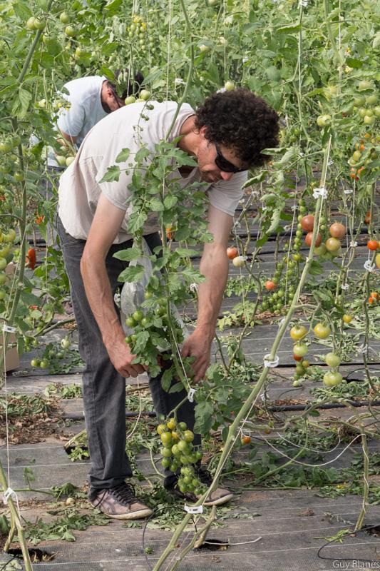 Nous étions deux, Philippe et moi, en tout, à s’être rendu à Chevrainvillers, par cette belle journée de Septembre. C’est, non aux mauvaises herbes mélangés aux carottes mais aux tomates sous serre que nous mous sommes “attaqués”. Nous avons appris par Paul comment identifier et éliminer les “gourmands” et les feuilles inutiles des pieds de tomates.