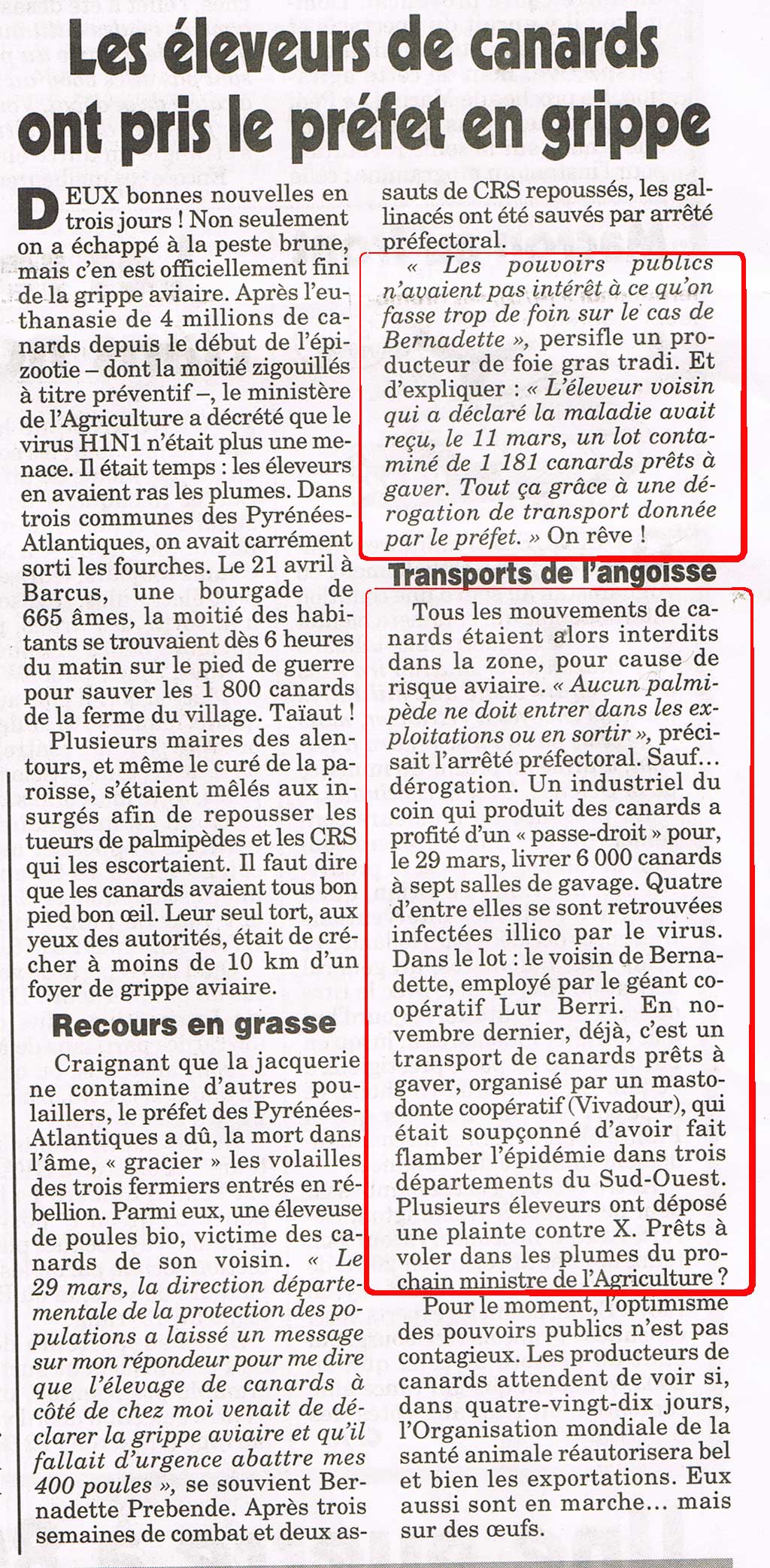 L’épidémie de grippe aviaire, nous expliquait-il alors, était principalement causée par les transports de volailles industrielles.