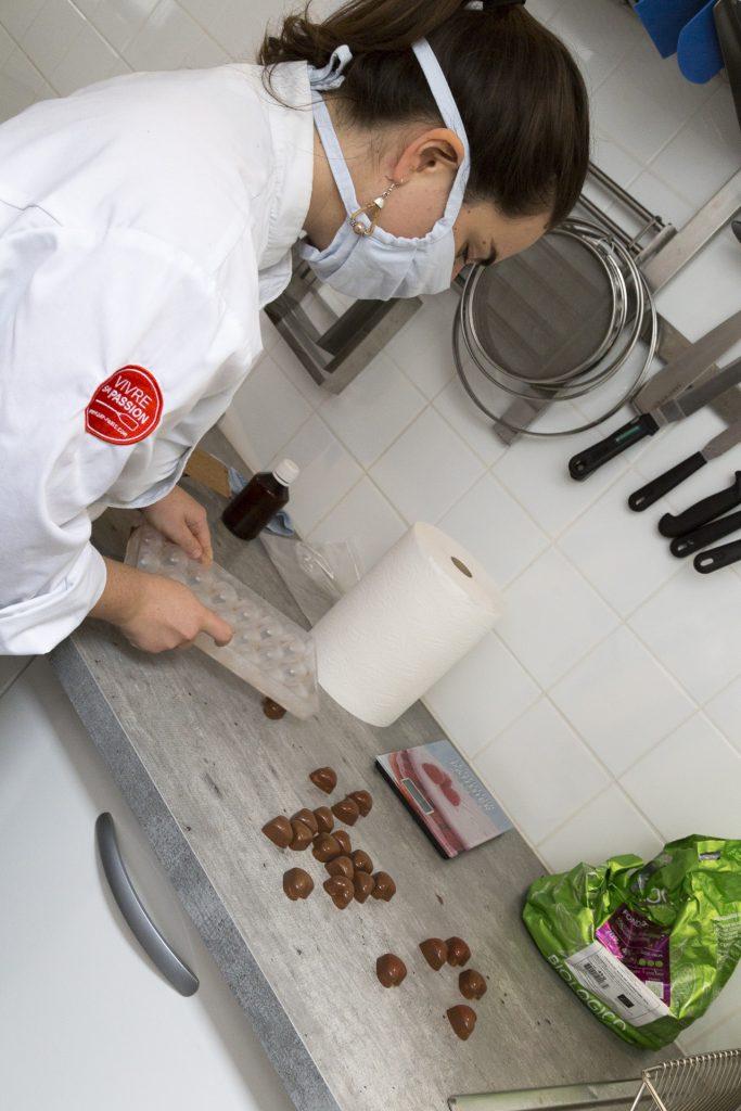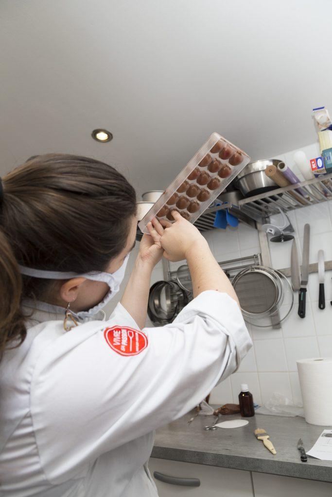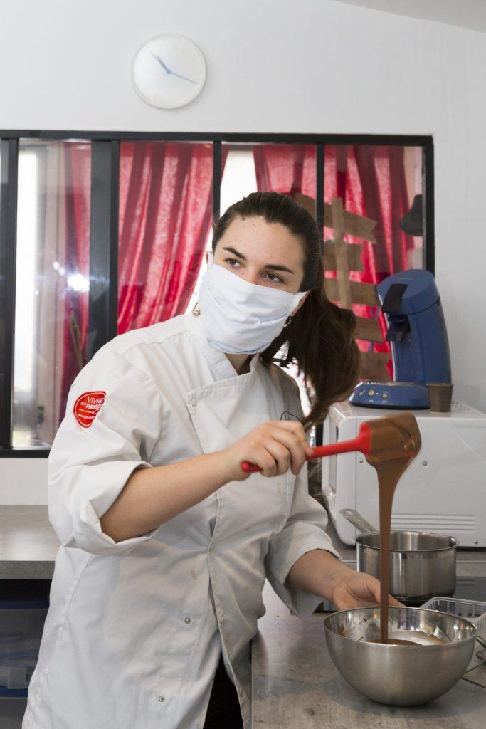 Samedi 27 Juin, Séphora, la “Souris Chocolatière” sera en direct pendant la distribution pour dialoguer avec nous amapiens : répondre à vos questions, recueillir vos remarques et partager sa passion… C’est ce qu’elle a fait avec beaucoup d’enthousiasme et de compétence au cours d’une démonstration dans son”labo” le mercredi 11 Juin à Vaux le Penil pour Alain, Isabelle et moi…