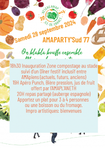 N’oubliez pas de réservez votre samedi soir pour venir à la soirée des 20 ans de l’AMAP ! 😀
