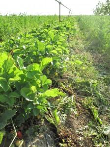 Une rangée de fraisiers débroussaillée, à Châtenoy